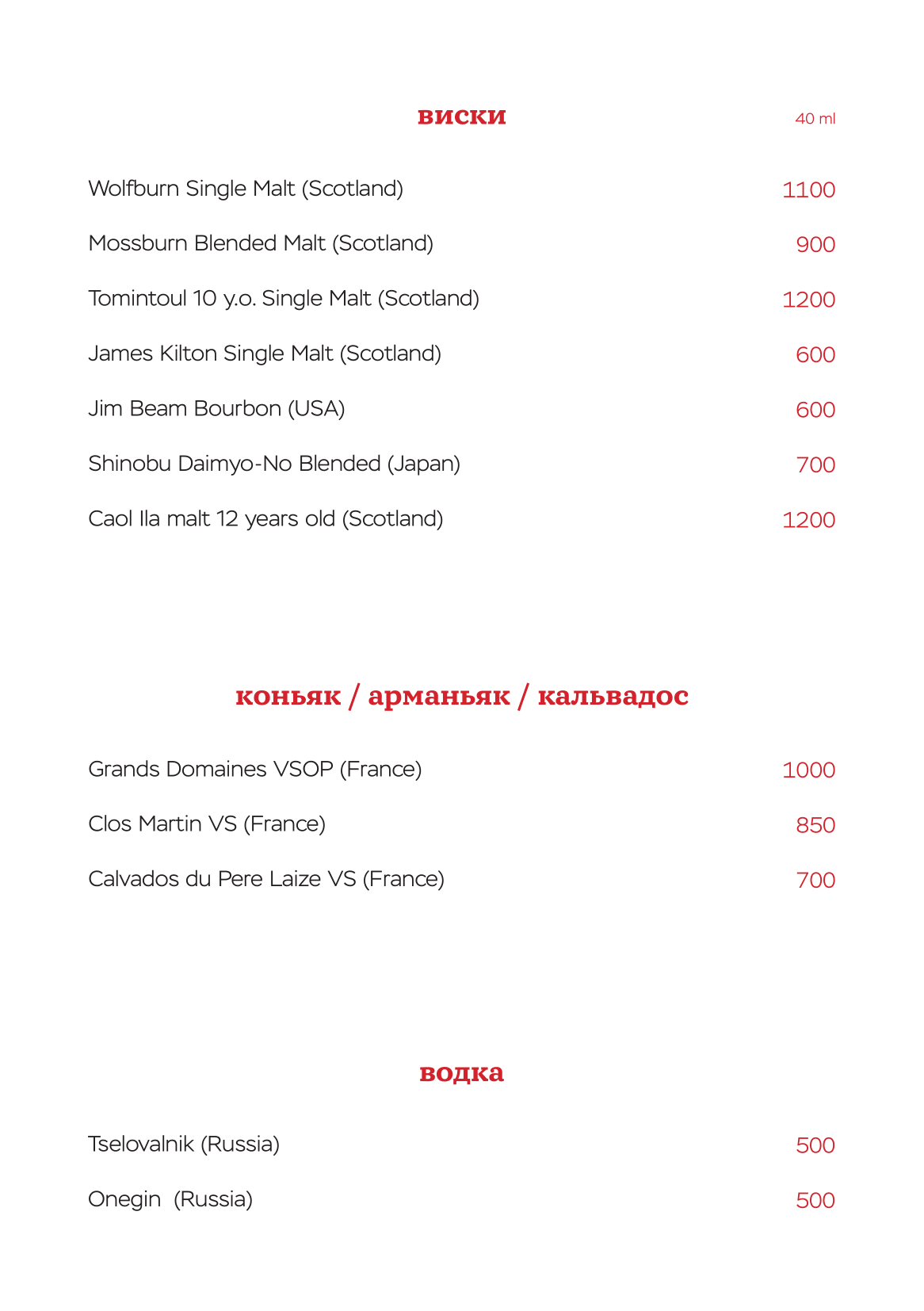 ОСНОВНОЕ МЕНЮ
