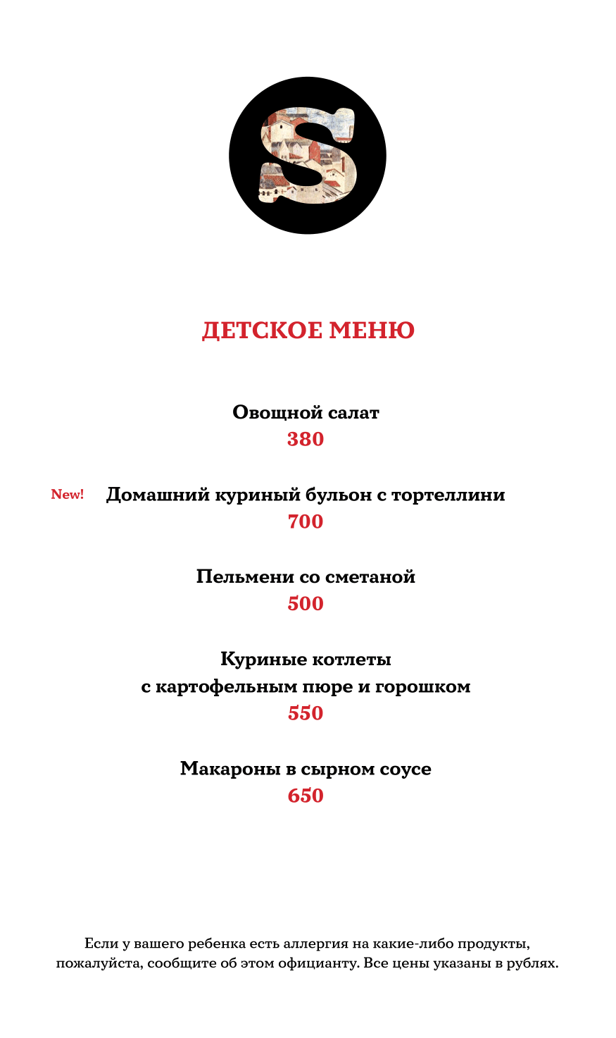 ДЕТСКОЕ МЕНЮ
